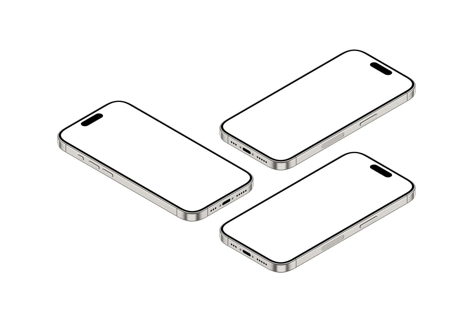 iPhone 15 Pro PNG – Isometric View White Titanium
