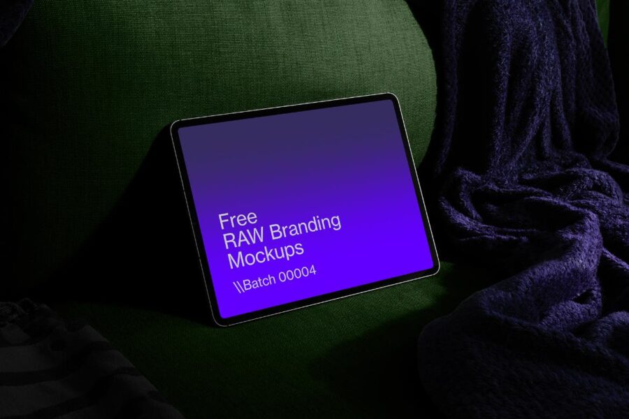 Showcase your designs with this Free iPad Pro Mockup, elegantly placed on a sofa in a dark environment. The soft textures of the sofa combined with the low lighting create a cozy and sophisticated atmosphere, allowing your content to shine. Easily customize the screen using PSD smart layers to present your apps, websites, or digital artwork in a stylish setting.